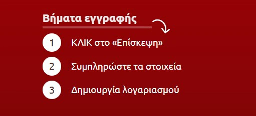 Αν πάντως θα θέλαμε να το απλοποιήσουμε, η διαδικασία εγγραφής χωρίζεται σε τρία απλά βήματα. Επίσκεψη - Στοιχεία - Εγγραφή.