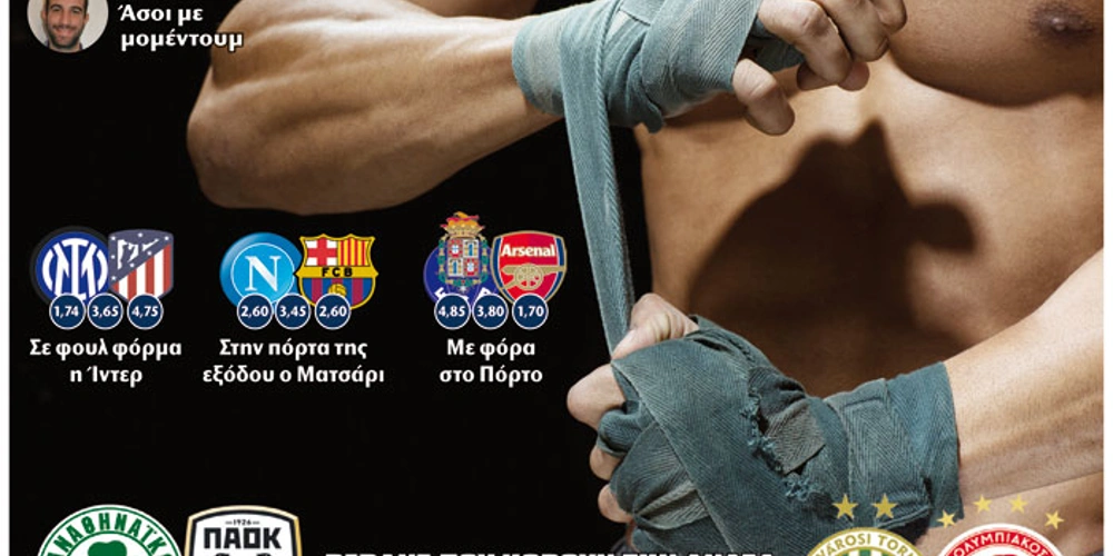 Στα προγνωστικά στοιχήματος Τσάμπιονς Λιγκ, Νάπολι - Μπαρτσελόνα παίζουν στη σκιά της, όπως δείχνουν επικείμενης, απόλυσης του Ματσάρι από την ιταλική ομάδα. Ενώ η τρομερά φορμαρισμένη Άρσεναλ, ψάχνει να συνεχίσει την κούρσα της στο εκτός έδρας με την Πόρτο. Ζόρικα τα προγνωστικά στοιχήματος στο Ίντερ - Ατλέτικο, με τους νερατζούρι να είναι στην καλύτερη φετινή τους στιγμή. Από την άλλη βέβαια ποιος μπορεί να υποτιμήσει ή να ξεγράψει την ομάδα του Σιμεόνε. Προφανώς προετοιμαζόμαστε για ένα τριήμερο υψηλών πτήσεων και αδρεναλίνης σε όλα τα μέτωπα.