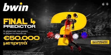 Κάπως έτσι η γιορτή του ευρωπαϊκού μπάσκετ παίρνει άλλο… ενδιαφέρον κι εσύ το ζεις σε bwin επίπεδο. Το «F4 Predictor» σε περιμένει με δωρεάν συμμετοχή, για να κάνεις τις προβλέψεις σου και να διεκδικήσεις τις €50.000 μετρητά!